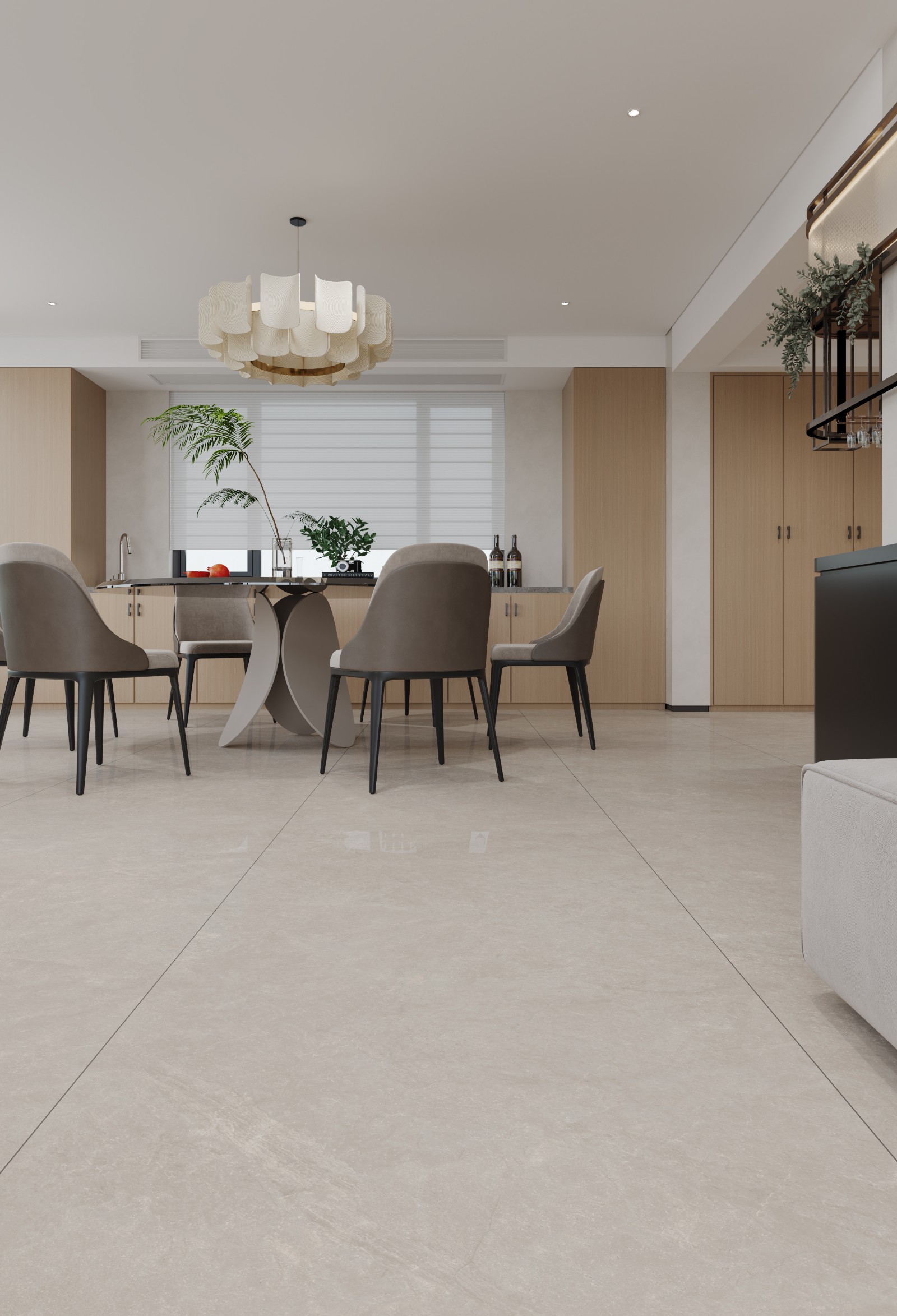 優(yōu)雅浪漫的卡地亞米,將頂級奢石的獨特肌理和柔潤光感融入到瓷磚設計中,在米黃基底上