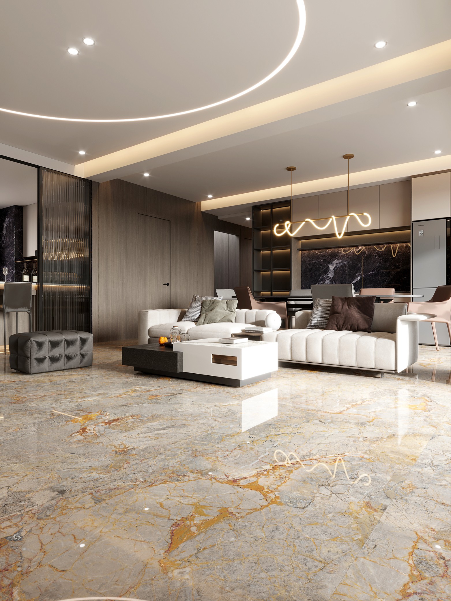 設計靈感來(lái)源于烏尤尼鹽沼的云海,當 陽(yáng)光灑在這片無(wú)垠的鏡面上,云朵在天 空與地面之間自由游走,形成一幅流動(dòng) 的畫(huà)卷。我們捕捉了這一瞬的寧靜與和 諧,將云海的輕盈與天空的深邃融入瓷 磚設計。每一片瓷磚都如同天空之鏡, 反射出室內的光影,為您的空間帶來(lái)一 份寧靜與深遠.